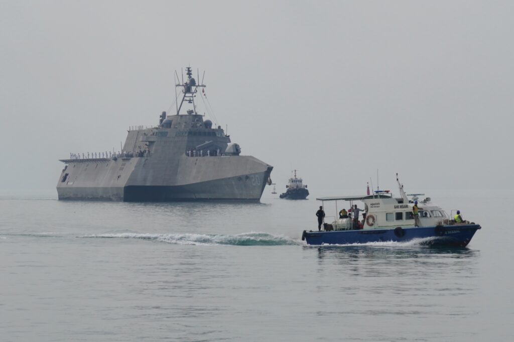 នាវាកងទ័ពជើងទឹកអាមេរិក ចូលដល់សមុទ្រកម្ពុជា ចតនៅមូលដ្ឋានសមុទ្ររាម៥ថ្ងៃ, ការមកដល់នាវាជើងទឹកអាមេរិក បង្ហាញការលើកកម្ពស់កិច្ចសហប្រតិបត្តិការយោធាកម្ពុជា-អាមេរិក 24-01-2026 10:10 (ភ្នំពេញ)៖ ដូចការគ្រោងទុកនាវាចម្បាំងអាមេរិកមួយគ្រឿង ជាមួយនាវិកប្រមាណជា១០០នាក់ បានចូលដល់សមុទ្រកម្ពុជាហើយ ហើយនឹងចតនៅមូលដ្ឋានសមុទ្ររាមរយៈពេល៥ថ្ងៃ ចាប់ពីថ្ងៃទី២៤ ដល់ថ្ងៃទី២៨ ខែមករា។ នាវាកងទ័ពជើងអាមេរិកដែលចូលចតនៅផែសមុទ្ររាមនេះ មានឈ្មោះ USS CINCINNATI (LCS 20)។ នាវានេះ មានទម្ងន់ប្រមាណជា ៣ពាន់តោន មានប្រវែងជិត ១៣០ម៉ែត្រ ហើយមានផ្ទុកឧទ្ធម្ភាគចក្រផងដែរ។ នាវាកងទ័ពជើងអាមេរិក ដែលជានាវាកងទ័ពជើងទឹកបរទេសដំបូង ធ្វើដំណើរមកកាន់កម្ពុជានៅដើមឆ្នាំ២០២៦ ដឹកនាំដោយមេបញ្ជាការវរនាវីត្រី Andrew J.Recame។ ដំណើរមដល់នៃនាវាចម្បាំងអាមេរិក ត្រូវបានទទួលស្វាគមន៍យ៉ាងកក់ក្តៅដោយឧត្តមនាវីត្រី អុិន សុខេមរា មេបញ្ជាការរង មូលដ្ឋានសមុទ្ររាមកងទ័ពជើង។ ក្នុងឱកាសសំចតនៅសមុទ្រកម្ពុជានេះ កងទ័ពជើងទឹកកម្ពុជា និងអាមេរិក នឹងកម្មវិធីហ្វឹកហ្វឺនរួមគ្នា និងការលេងកីឡាជាមួយគ្នាផងដែរ ដើម្បីរឹតចំណងមេត្រីភាព។ ទំនាក់ទំនងការទូតរវាងកម្ពុជា និងសហរដ្ឋអាមេរិក រហូតមកដល់បច្ចុប្បន្នមានរយៈពេល ៧៦ឆ្នាំ ដោយចាប់ផ្តើមនៅថ្ងៃទី១១ ខែកក្កដា ឆ្នាំ១៩៥០ ក្រោយពេលបញ្ចប់សង្គ្រាមលោកលើកទី២។ ដោយឡែកកងទ័ពជើងទឹកកម្ពុជា និងកងទ័ពជើងទឹកអាមេរិកជានិច្ចកាលបានផ្លាស់ប្តូរកិច្ចសហប្រតិបត្តិការទៅវិញទៅ មកតាមរយៈការហ្វឹកហ្វឺននានា ការចូលជួបសវនាការសម្តែងការគួរសម និងជួយឧបត្ថម្ភគាំទ្រផ្សេងៗទៀត។ ចាប់តាំងពីឆ្នាំ២០០៣ រហូតដល់ឆ្នាំ២០២៦នេះ នាវាកងទ័ពជើងទឹកសហរដ្ឋអាមេរិក បានចូលសំចតបំពេញទស្សនកិច្ចសរុបទាំងអស់ចំនួន ៣១លើកជាមួយនឹងនាវាចំនួន ៣៧គ្រឿង។ មន្ត្រីកងទ័ពជើងទឹកកម្ពុជា ចាត់ទុកដំណើរទស្សនកិច្ចនេះ បង្ហាញពីការប្តេជ្ញាចិត្តរបស់កម្ពុជា ក្នុងការអនុវត្តគោលនយោបាយបើកចំហ តម្លាភាព និងសហប្រតិបត្តិការជាមួយដៃគូអន្តរជាតិ ដើម្បីរួមចំណែកថែរក្សាសន្តិភាព និងស្ថិរភាពតំបន់។ កម្ពុជា បន្តគាំទ្រការលើកកម្ពស់សន្តិភាព ស្ថិរភាព និងវិបុលភាពក្នុងតំបន់អាស៊ាន និងឥណ្ឌូ-ប៉ាស៊ីហ្វិក តាម រយៈកិច្ចសហប្រតិបត្តិការដែលផ្អែកលើការគោរពអធិបតេយ្យភាព និងច្បាប់អន្តរជាតិ។ មន្ត្រីកងទ័ពជើងទឹកកម្ពុជា បានអះអាងថា កងទ័ពជើងទឹកកកម្ពុជាត្រៀមខ្លួនរួចជាស្រេច ក្នុងការពង្រឹងកិច្ចសហប្រតិបតិត្តការរវាងកងទ័ពជើងទឹកប្រទេសទាំងពីរជាមួយការស្វាគមន៍បន្ថែមទៀតពីសំណាក់នាវាកងទ័ពជើងទឹកសហរដ្ឋអាមេរិក។ សូមបញ្ជាក់ថា ជាមួយការចូលចតនៃនាវាកងទ័ពជើងទឹកអាមេរិកនាពេលនេះ ក៏មានដំណើរទស្សនកិច្ចនៅកម្ពុជារប