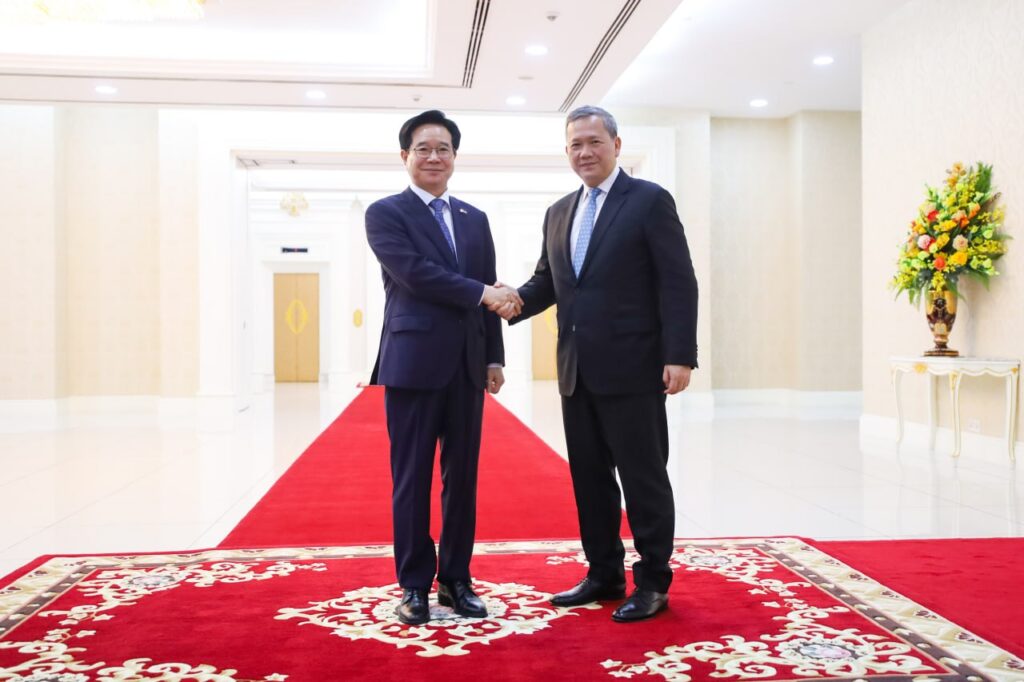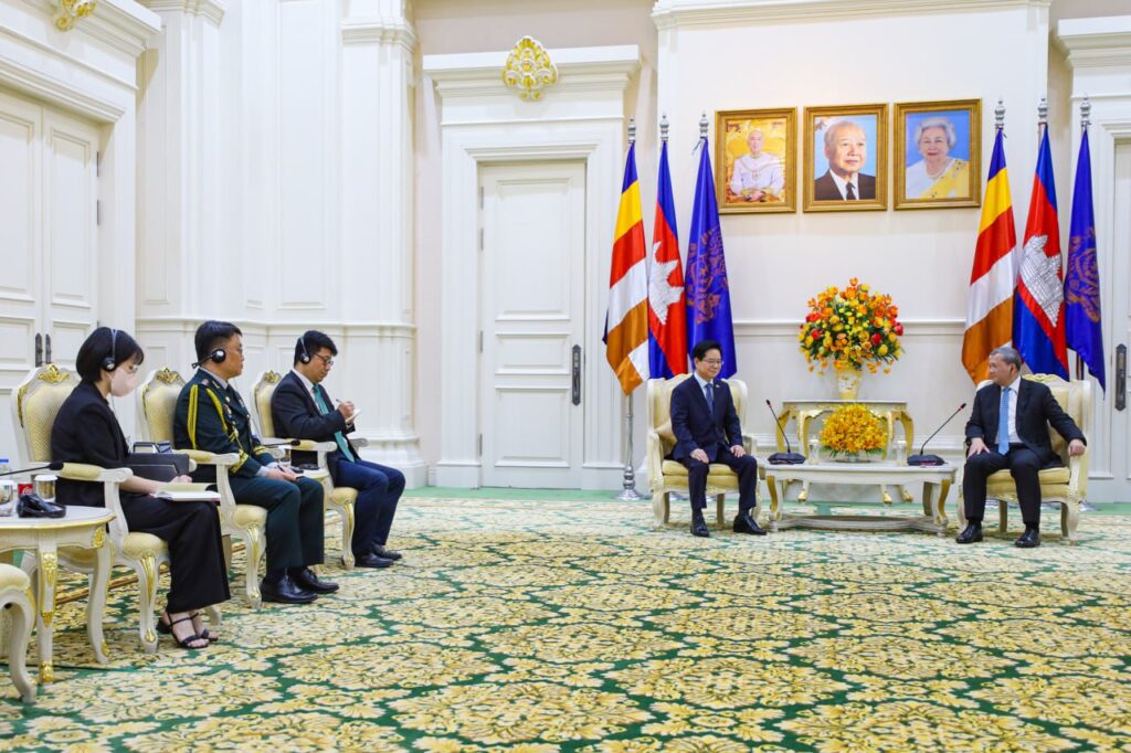 (ភ្នំពេញ)៖ នៅព្រឹកថ្ងៃអង្គារ ទី១៧ ខែមីនា ឆ្នាំ២០២៦នេះ សម្តេចមហាបវរធិបតី ហ៊ុន ម៉ាណែត នាយករដ្ឋមន្ត្រីកម្ពុជា បានអនុញ្ញាតឱ្យលោក KIM Changyong ឯកអគ្គរដ្ឋទូតកូរ៉េខាងត្បូង ប្រចាំនៅកម្ពុជា ចូលជួបសម្តែងការគួរសម និងពិភាក្សាការងារ នៅវិមានសន្តិភាព៕