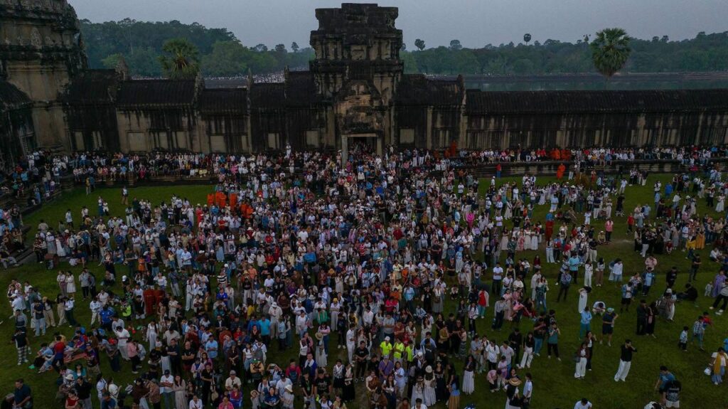 (សៀមរាប)៖ ភ្ញៀវទេសចរជាតិ និងអន្តរជាតិជាង ៣ម៉ឺននាក់ នាព្រឹកព្រលឹមថ្ងៃទី២២ ខែមីនា ឆ្នាំ២០២៦ បានធ្វើដំណើរមកពីគ្រប់ទិសទី ដើម្បីទស្សនាព្រឹត្តិការណ៍សមរាត្រី (Equinox) ដែលជាទិដ្ឋភាពព្រះសូរិយារះឡើងចំកំពូលប្រាង្គកណ្តាលនៃប្រាសាទអង្គរវត្តយ៉ាងស្រស់ត្រកាលបំផុត។ នេះបើយោងតាមការឲ្យដឹងរបស់អាជ្ញាធរជាតិអប្សរា។ ព្រឹត្តិការណ៍សមរាត្រី (Equinox) ជាភស្តុតាងដែលបង្ហាញពីចំណេះដឹងផ្នែកតារាសាស្ត្រ និងស្ថាបត្យកម្មដ៏ខ្ពង់ខ្ពស់នៃអាណាចក្រខ្មែរ។ ចំពោះភ្ញៀវទេសចរដែលមិនទាន់បានមកទស្សនា នៅតែអាចមកគយគន់ទិដ្ឋភាពដ៏អស្ចារ្យនេះបានរហូតដល់ថ្ងៃទី២៣ ខែមីនា ឆ្នាំ២០២៦៕